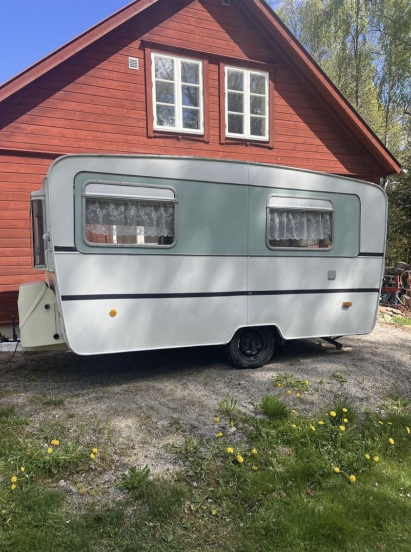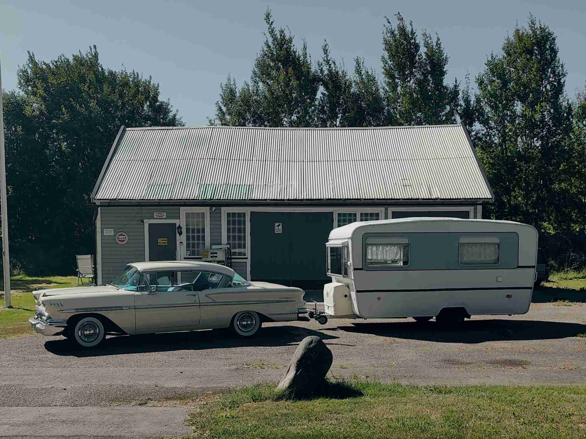 Micke och Jennys Chevrolet Bel Air 58 köpt i Strängnäs, renoverad i Sävsjö. Import från England, Husvagn. Eccles Monestone 1965, köpt utanför Olofström